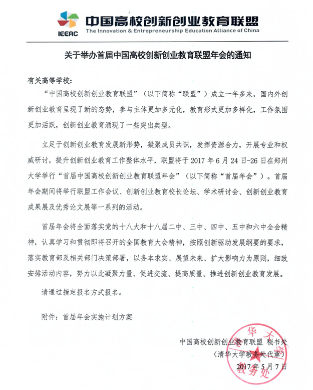 关于举办首届中国高校创新创业教育联盟年会的通知