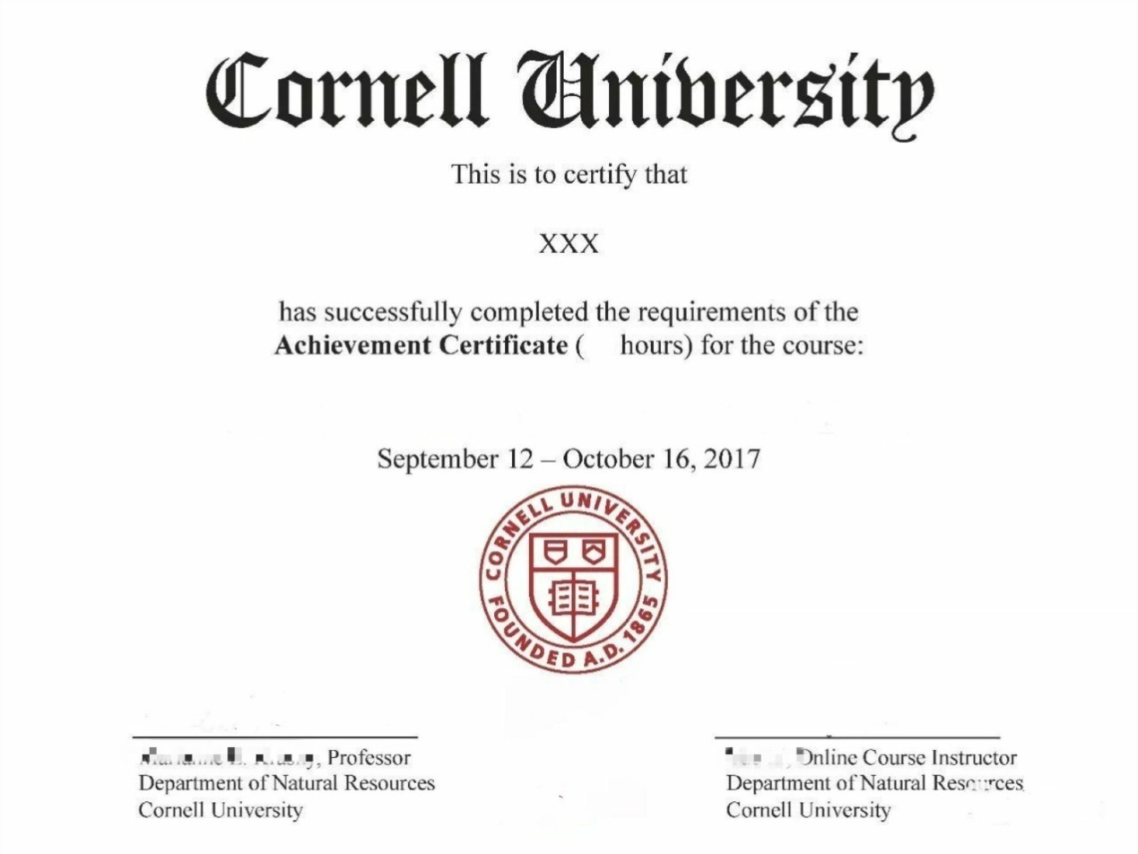 康奈尔大学官方颁发的项目证书(样本,仅供参考)