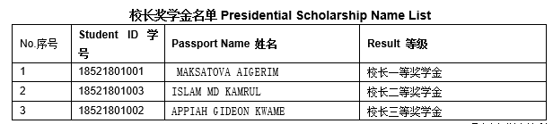 (Presidential Scholarship, Partial Scholarship and Zhejiang Government Scholarship)