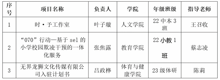 为确保众创空间持续健康发展,使其更好地服务老员工创业实践,经过资格审查、工作考核和路演答辩,共有3支创业团队获得入驻太阳集团tyc4633众创空间资格。现予以公示,名单如下。